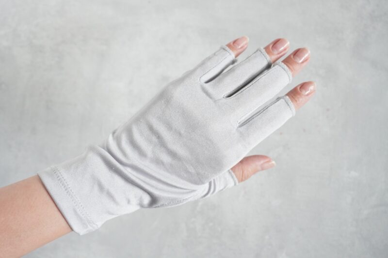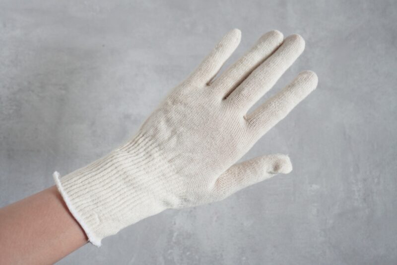 縫い合わせタイプなのでフィット感が良く、綿を含む素材なのでほどよくハンドクリームと馴染む質感で、指先までしっかり包み込んでくれます。