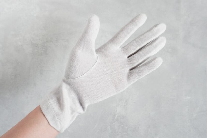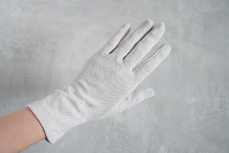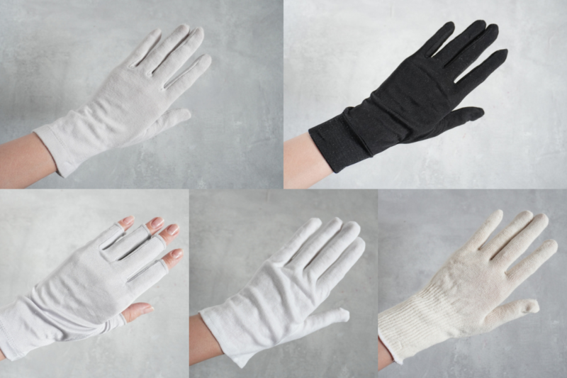 ハンドケア手袋の素材としては綿やシルクが一般的。綿100%、シルク100%、綿とシルクのミックス素材の3種類を使ってみたところ、素材は使用シーンに合わせて変えるのが良さそうという結論に。