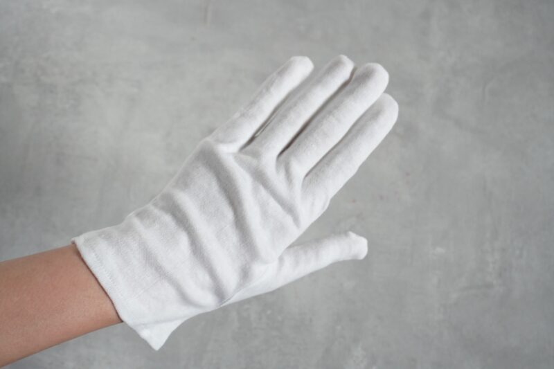 綿100% や綿とシルクのミックス素材など、一部でも綿を含む素材はフワッと柔らかい肌当たりが魅力。コッテコテに塗ったハンドクリームもほどよく吸収してくれるし、なにより柔らかく包み込んでくれて気持ちいい!