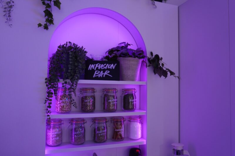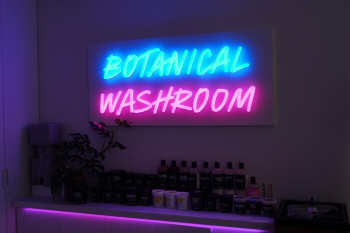 薄暗くて、いい匂いがして、観葉植物が飾られていて……というのは一般的なスパと同じだけれど、そこにこんなポップなネオンサインを飾っちゃうのはさすがはLUSH。かわいいし、気分がアガります!
