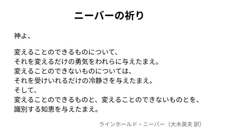 ニーバーの祈りを引用するまでもなく、自分の力ではどうしようもない問題については、諦めて受け入れるか、頭から追い出して忘れてしまうしかないんですよね。
